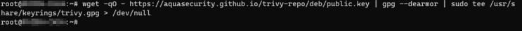 wget -qO - https://aquasecurity.github.io/trivy-repo/deb/public.key | gpg --dearmor | sudo tee /usr/share/keyrings/trivy.gpg > /dev/null