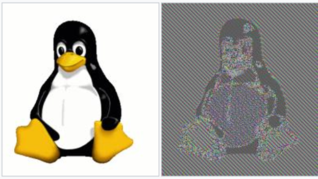El hecho de utilizar el vector inicial es importante para CBC, ya que podemos generar combinaciones diferentes para un mismo bloque a cifrar, es decir, que la parte blanca de la imagen del pingüino (que hemos visto antes) ya no se va a diferencia a menos que conozcamos la clave de descifrado. Este es el resultado: