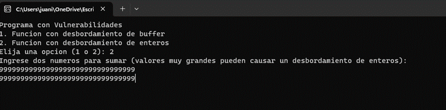 printf("2. Funcion con desbordamiento de enteros\n");